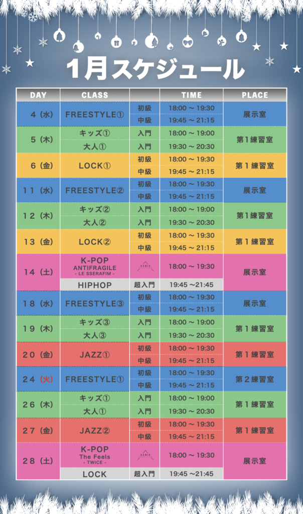 12月の上級クラスのレッスンは発表会の練習の為、休講となります。