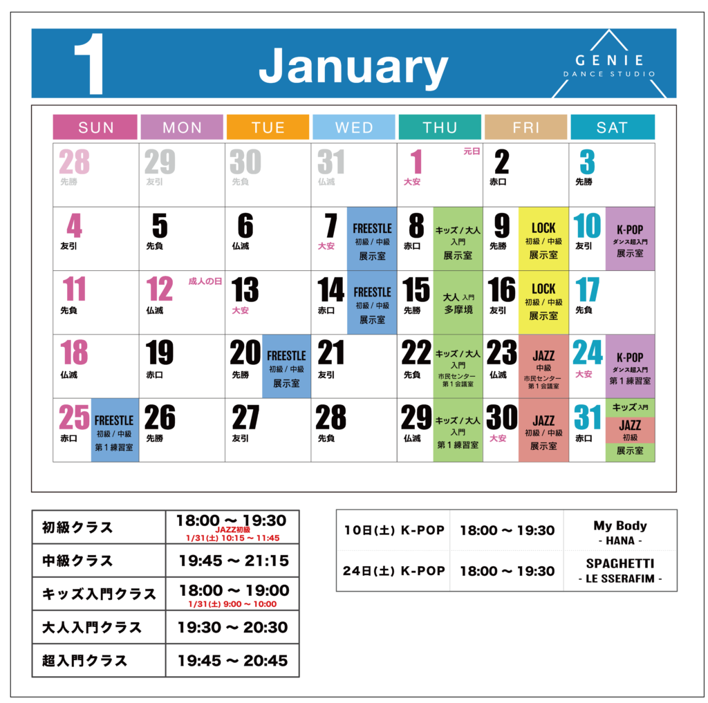 お知らせ2025年12月9日🎍1月レッスンスケジュールのお知らせ🎠