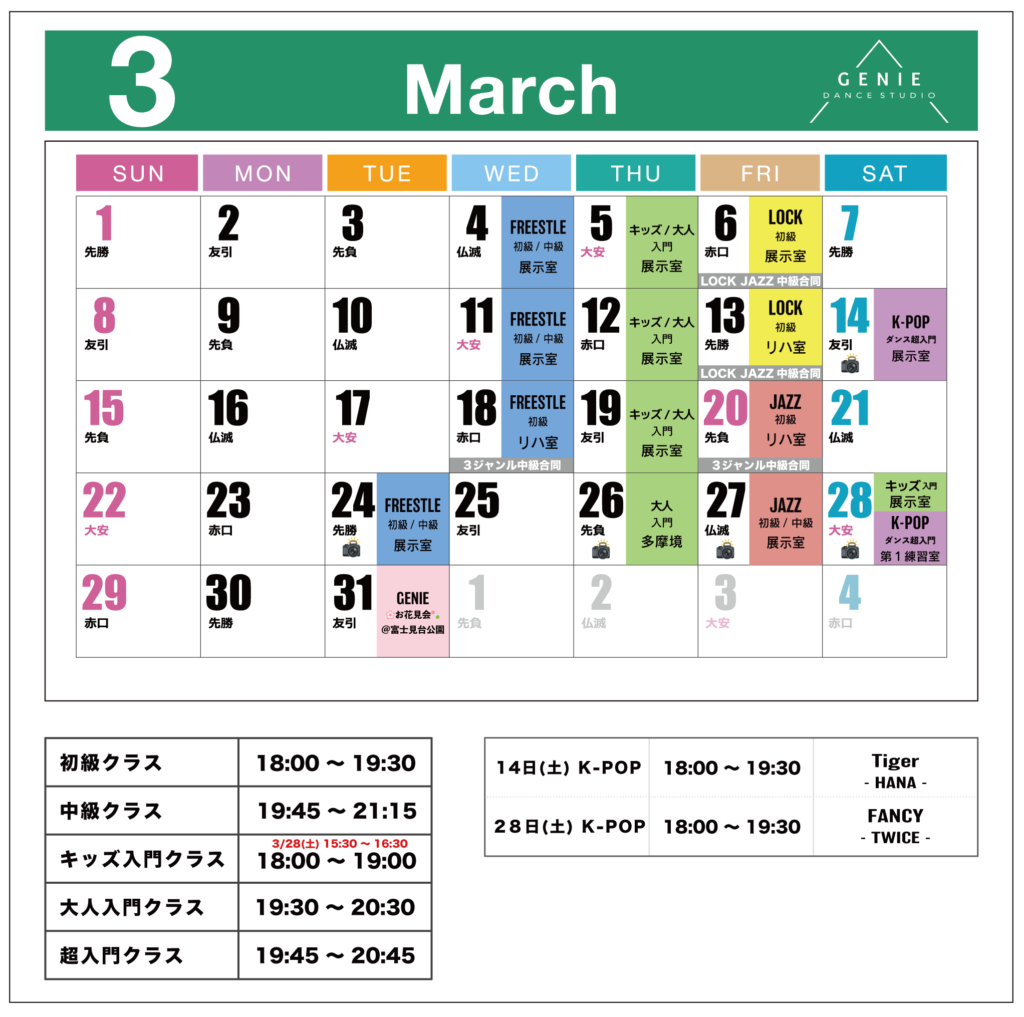 レッスンスケジュール2026年2月11日🎎3月レッスンスケジュールのお知らせ🎓